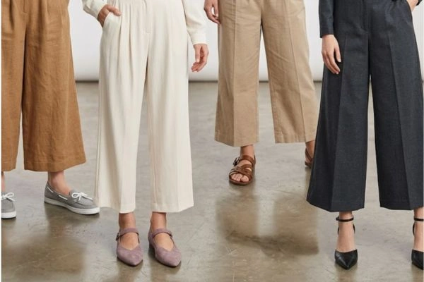 Slip-on loafers and ballet flats are also frequently mentioned in style guides. These options add a slightly polished feel while still being comfortable enough for daily wear. They work particularly well with the cropped length of the Colette cropped wide-leg pants, allowing the ankle to remain visible.